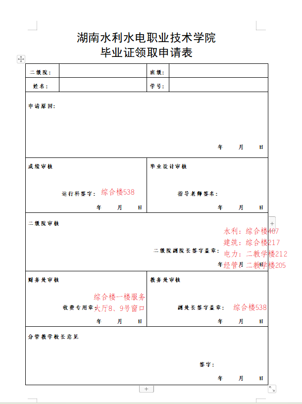 往届毕业生毕业证申领表