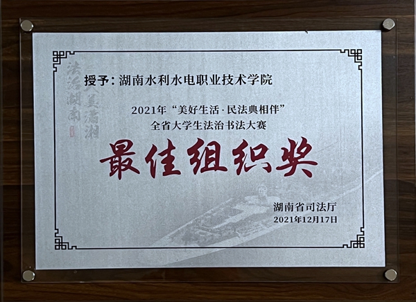“美好生活 民法典相伴”全省大学生法治书法大赛最佳组织奖