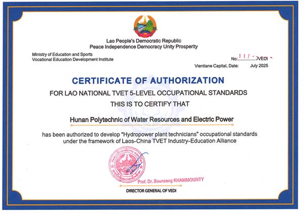 该项目由我校于年初成功申报,从全国多所院校激烈竞争中脱颖而出,成为全国仅6个获批项目之一。今年7月,在“2025中国—东盟职业教育联合会年会”上,老挝教育体育部正式向包括我校在内的6家研发单位颁发立项证书。项目完成后,“水电站技术员”职业标准将纳入老挝国家资历框架体系,成为该国水电领域技术技能人才培养与评价的核心依据,对推动其职业教育规范化和产业升级具有重要意义。