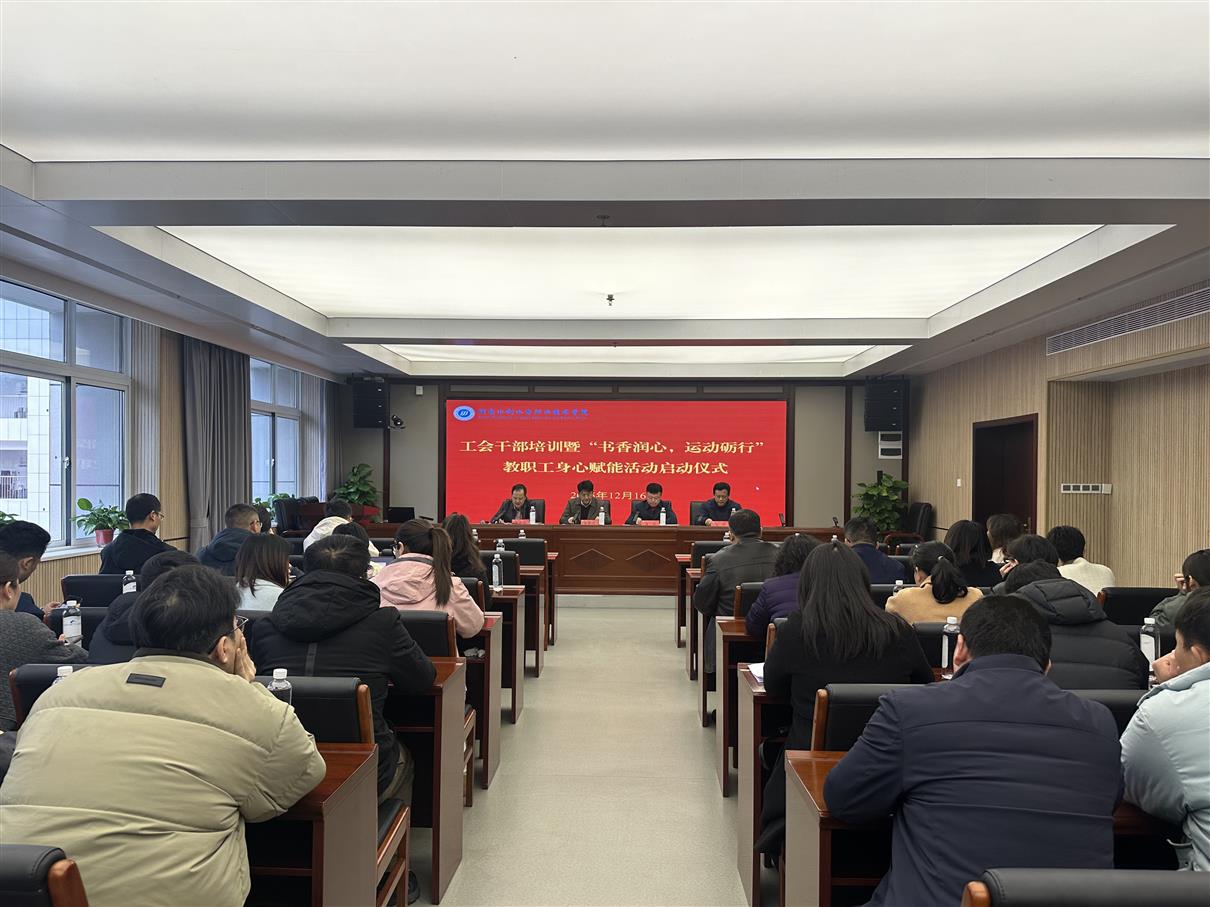 12月16日,工会干部培训暨“书香润心,运动励行”教职工身心赋能活动启动仪式在校举行。省教育工会高教部部长龙培出席并作专题授课,党委书记常世名出席并致辞,党委副书记、工会主席李付亮主持活动。全体专兼职工会干部齐聚一堂,共同参与了一场聚焦“履职”“赋能”的提升之旅。
