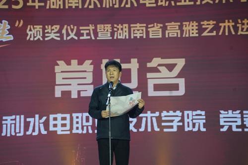 党委书记常世名在致辞中回顾了学校2025年在思政育人、技能竞赛、科技攻关、招生就业、社会服务等领域的亮眼成绩,寄语师生以“双高计划”建设为引领,深化产教融合,在服务湖南 “三高四新”战略中彰显水院担当。