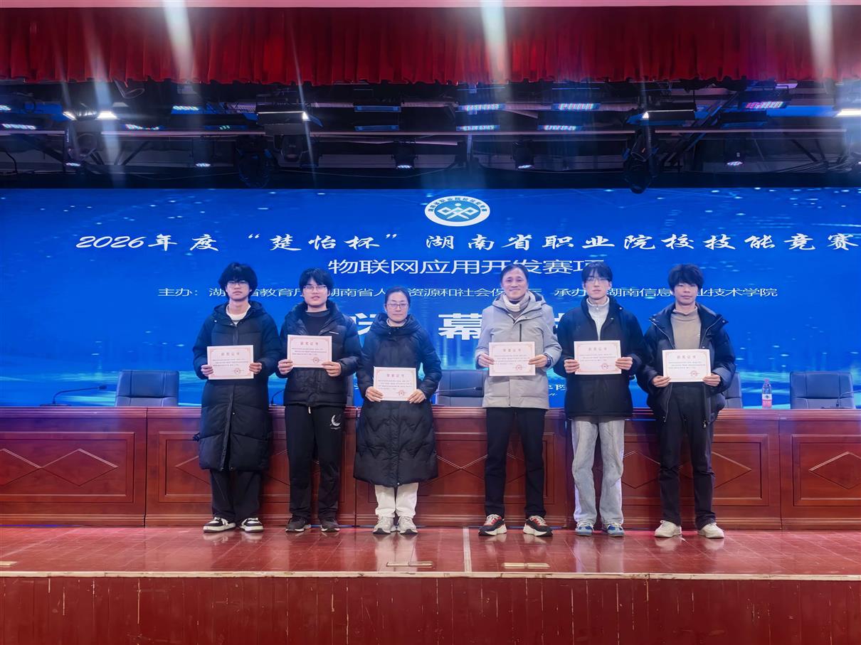 2月7日,2026年度“楚怡杯”湖南省职业院校技能竞赛“物联网应用开发”赛项圆满落幕。信息安全技术学院两支参赛队伍在全省26所参赛院校、51支参赛队伍的激烈角逐中双双突围,斩获省级一等奖1项、省级三等奖1项,实现我校在该赛项上的历史性突破。