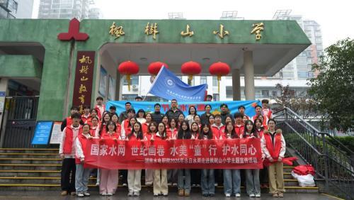 “节水魔法练起来,护水秘籍记心怀!”3月24日上午,长沙市枫树山小学本部及东校区童声嘹亮,“水美‘童’行——以美育心,节水同行”主题宣传活动在此温情启幕。我校100余名师生志愿者走进枫树山小学16个班级,以趣味宣讲、创意绘卷的沉浸式形式,开展节水护水教育,让爱水惜水的种子在童心扎根。
