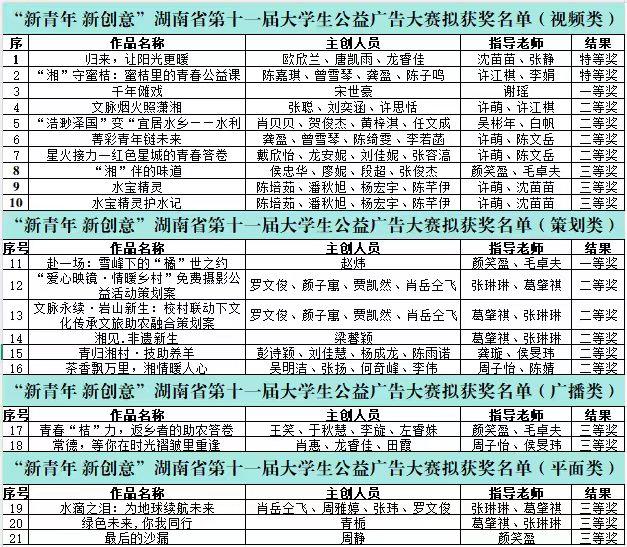 获奖作品紧扣时代主题,聚焦乡村振兴、文化传承、生态保护、关爱帮扶等公益领域,将专业所学与社会责任紧密结合,创意新颖、表达生动,充分展现了我校青年学子的家国情怀与创新素养。其中,作品《归来,让阳光更暖》《“湘”守蜜桔:蜜桔里的青春公益课》荣获特等奖;《千年傩戏》《赴一场:雪峰下的“橘”世之约》荣获一等奖,多个作品分获二、三等奖。